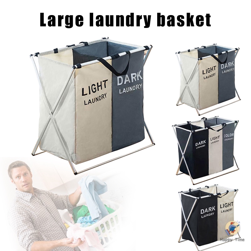 Laundry Hamper Sorter Basket Foldable Multi Pockets Aluminum Frame Washing Storage Dirty Clothes Bag Shopee Indonesia