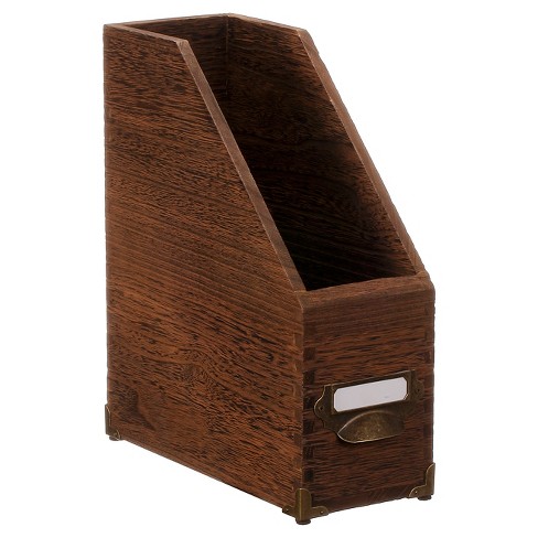 Featuring a book spine print the piece comes with a handle making it easy to slide in and out. Wooden magazine tiered holder JunkinJvintagefinds 5 out of 5 stars 30 2999. Its manufactured of wooden materials in warm browns.