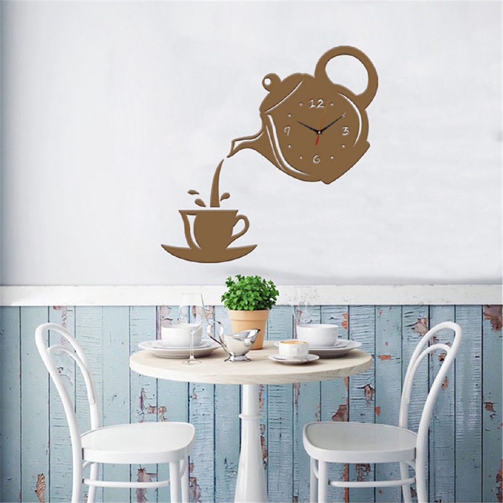 Creative Diy Acrylic Coffee Cup Teapot 3d Wall Clock Decorative Kitchen Wall Clocks Living Room Dining Room Home Decor Clock Shopee Indonesia
