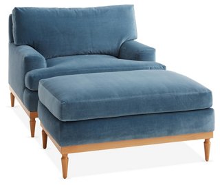 One Kings Lane Sutton Club Chair Ottoman Set Harbor Blue One Kings Lane