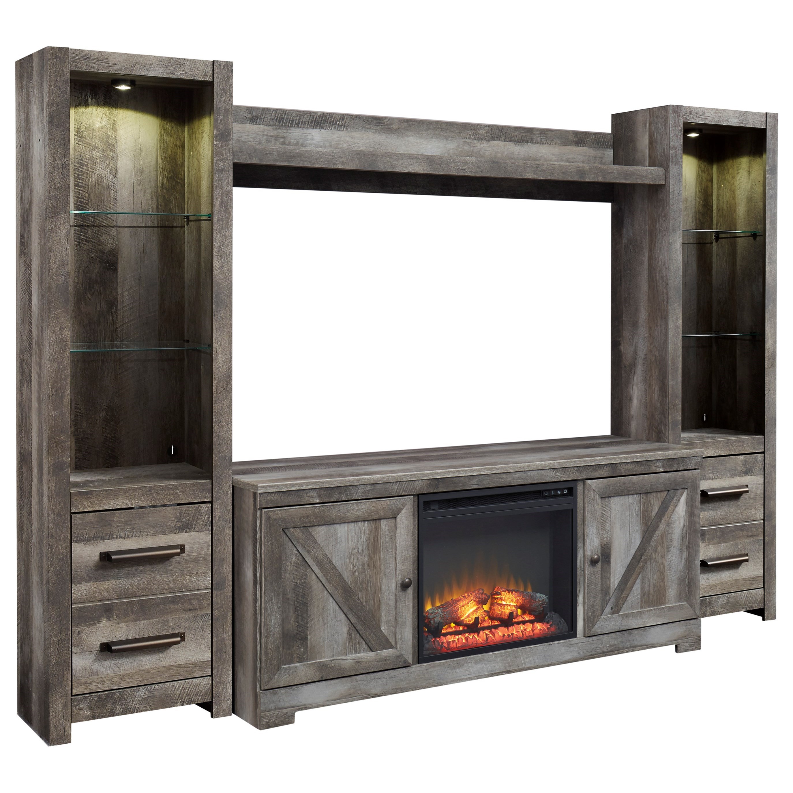 Vendor 3 Wynnlow W440 68 2x24 27 W100 101 Wall Unit With Fireplace 2 Piers In Rustic Gray Finish Becker Furniture Wall Unit