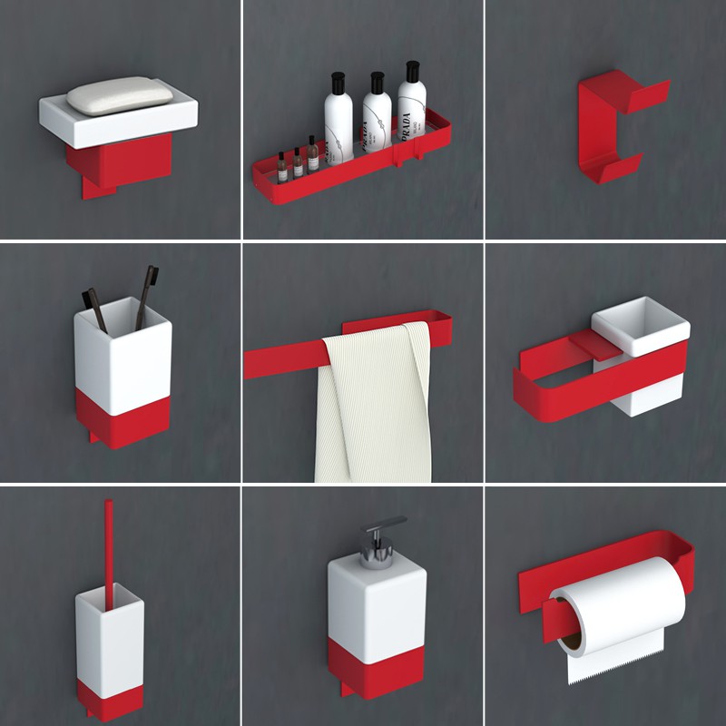 ONTROWA Bathroom Accessories Set 6 Pieces Plastic Bathroom Accessories Toothbrush Holder Rinse Cup Soap Dish Hand Sanitizer Bottle Waste Bin Toilet Brush with Holder RED 40 out of 5 stars 598 2798 27. YellyHommy Mid Century Modern Shower Curtain Red Bathroom Accessories Black and Gray Shower Curtain Set with 12 Hooks 72x72 Inches. Our unique fixing system makes sure paper holders soap dishes robe hooks and towel rails stay firm and in place on the wall.
