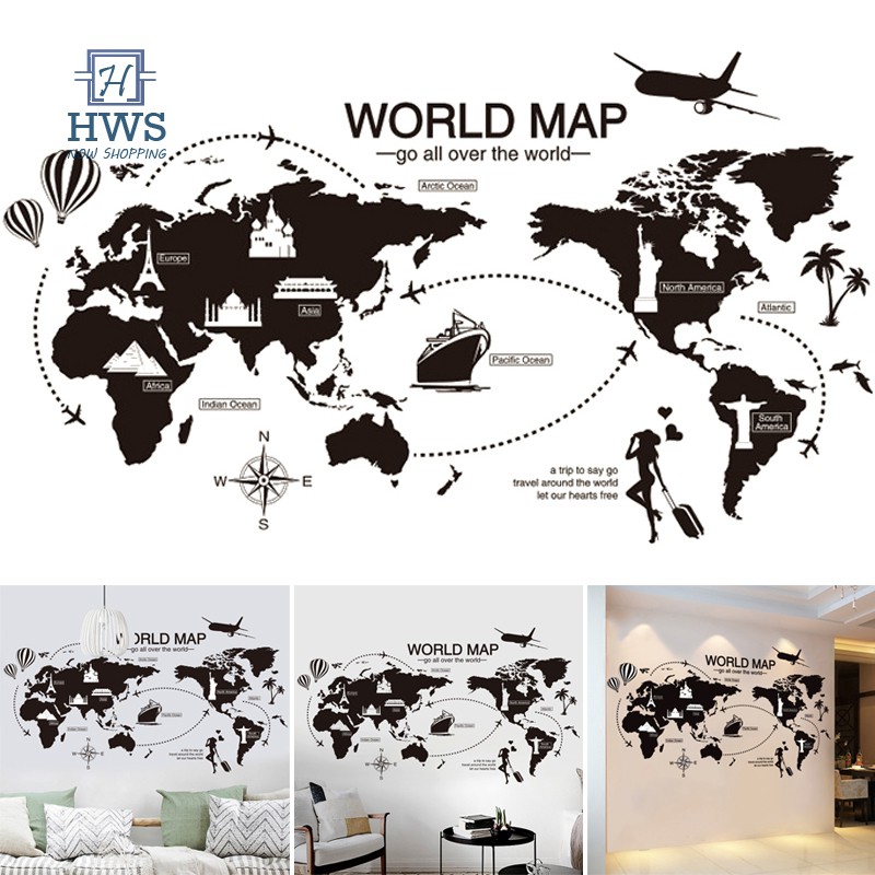 Black World Map Wall Decor Sticker Home Decor Wall Art Easy To Apply And Removable Shopee Indonesia